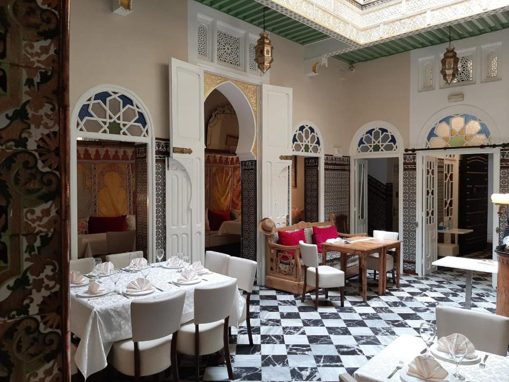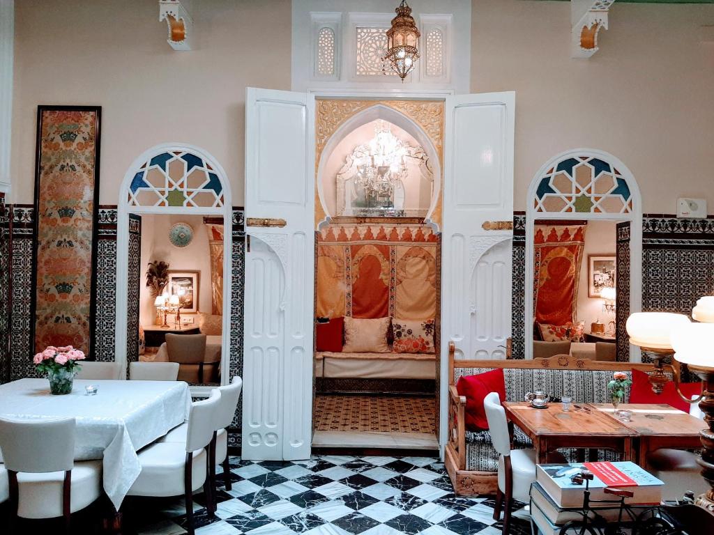 Antigua casa del siglo XVIII restaurada con elegancia. Decoración cuidada, ambiente tranquilo y cocina tradicional tetuaní elaborada con productos locales.