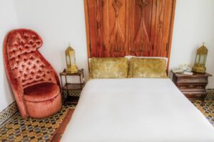 Dormir en la medina no es simplemente alojarse: es sentir la ciudad cuando el bullicio se transforma en silencio y el patio interior se ilumina con luz tenue.